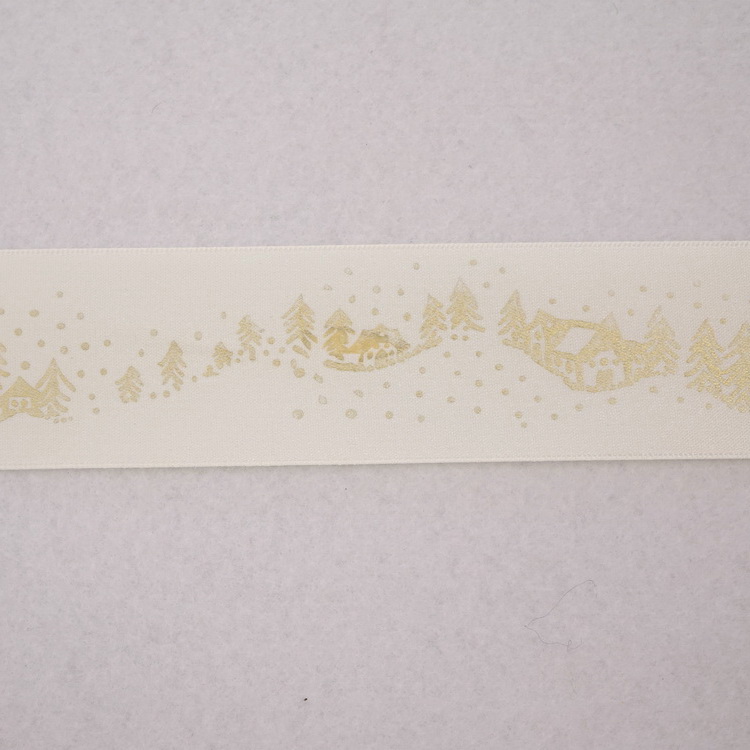 Polyester Satin Ribbon - Gold Christmas Trees - 2 Widths / 5 Colours Available
