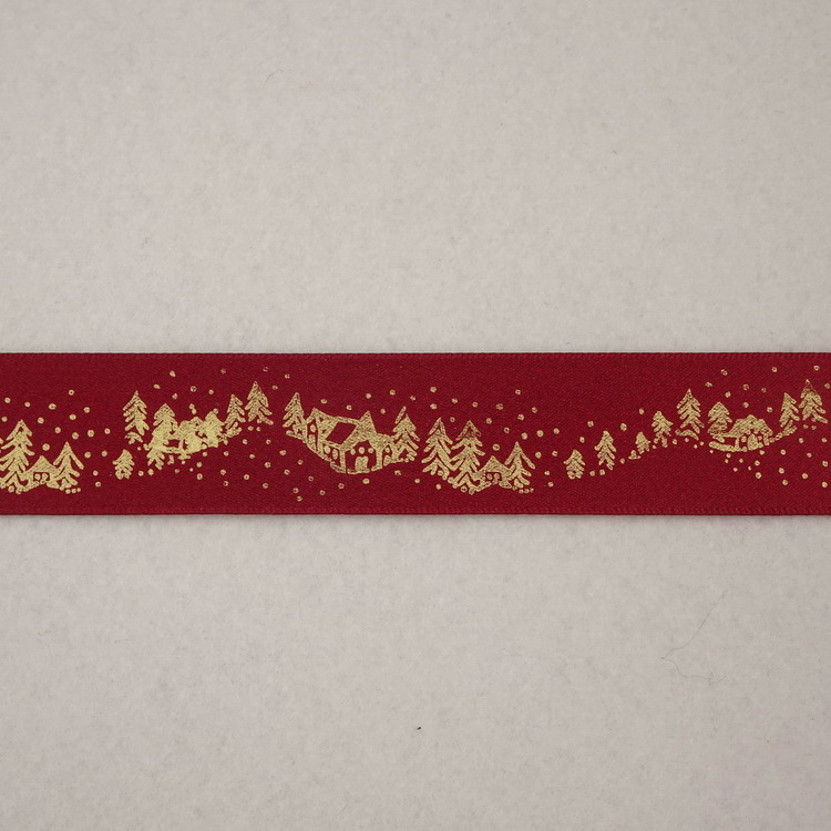 Polyester Satin Ribbon - Gold Christmas Trees - 2 Widths / 5 Colours Available