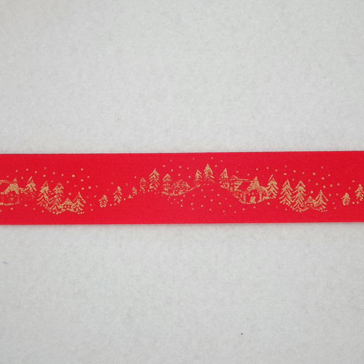 Polyester Satin Ribbon - Gold Christmas Trees - 2 Widths / 5 Colours Available
