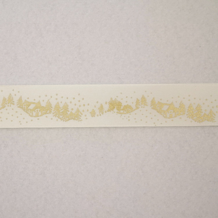 Polyester Satin Ribbon - Gold Christmas Trees - 2 Widths / 5 Colours Available