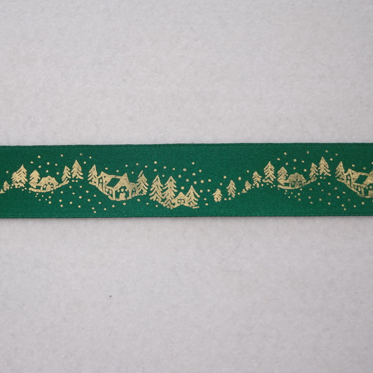 Polyester Satin Ribbon - Gold Christmas Trees - 2 Widths / 5 Colours Available