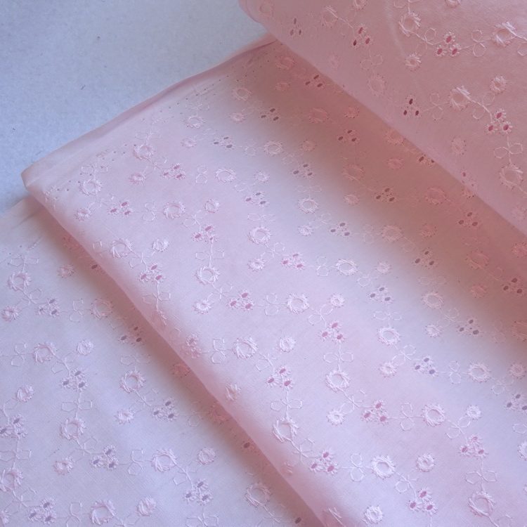 Broderie anglaise (French for “English embroidery”) is a whitework needlework technique incorporating features of embroidery, cutwork and needle lace that became associated with England, due to its popularity here in the 19th century. It is perfect for use as a dress fabric, nursery bedding, Christening-wear, soft furnishings and much more-