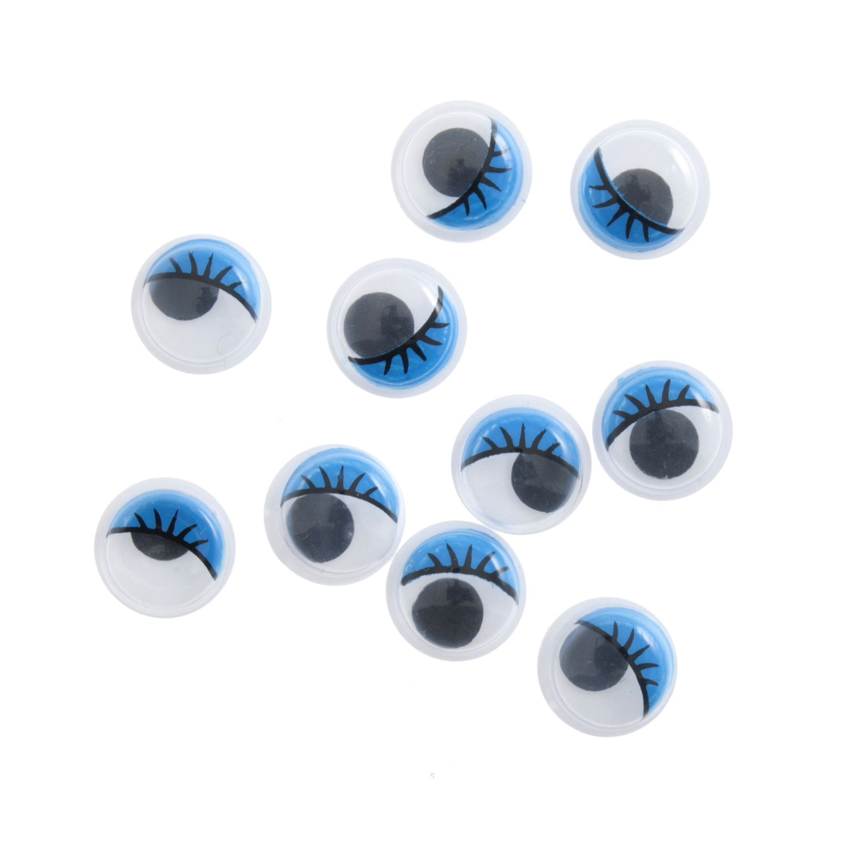 Glue-on, googly eyes, with colour and eyelashes. Conforms to B55665/EN71 Safety Standards. Not suitable for children under 3 years old.