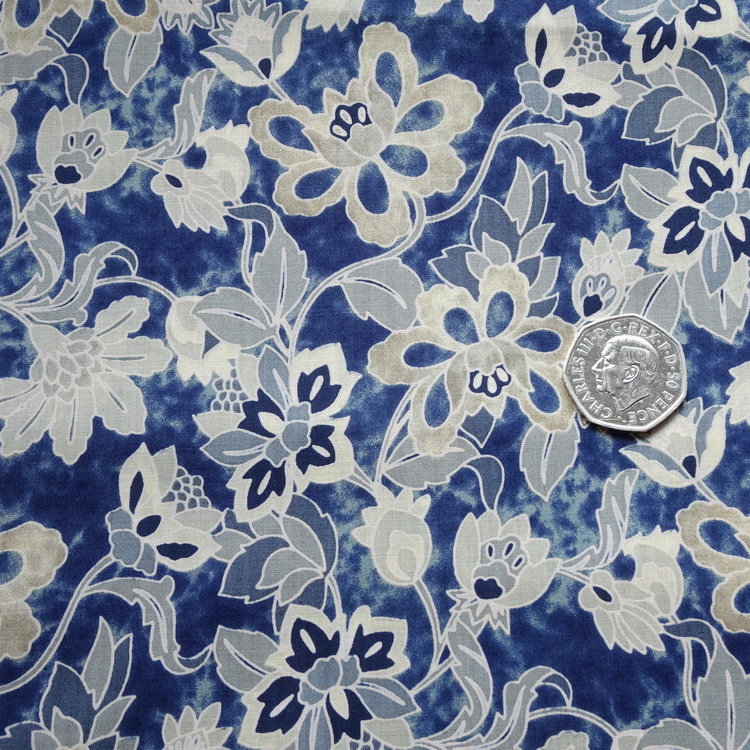 100% Pima Cotton Lawn - Navy & Ecru Floral- 135cm/53" Wide