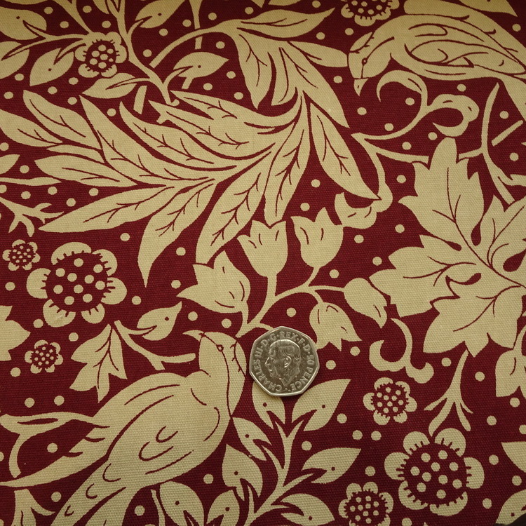100% Cotton Duck - Burgundy Floral / Birds- 150cm / 59" Wide
