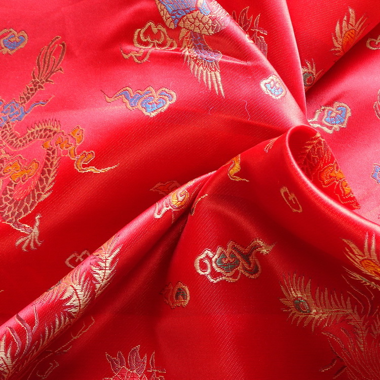 Chinese Brocade Satin Embroidered Fabric -