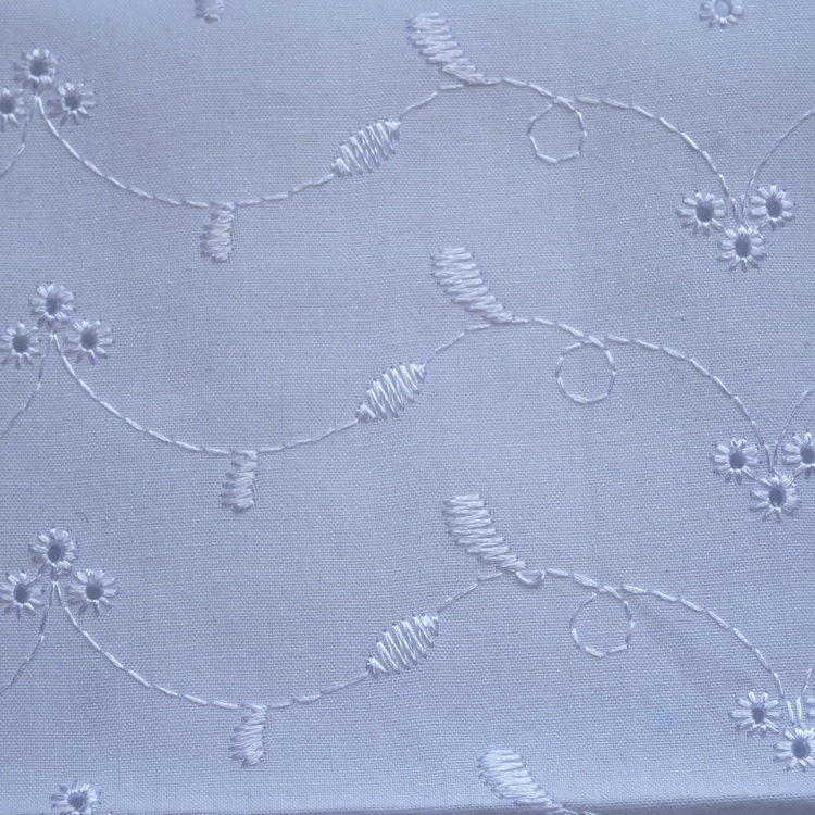 Broderie anglaise (French for “English embroidery”) is a whitework needlework technique incorporating features of embroidery, cutwork and needle lace that became associated with England, due to its popularity here in the 19th century. It is perfect for use as a dress fabric, nursery bedding, Christening-wear, soft furnishings and much more-
