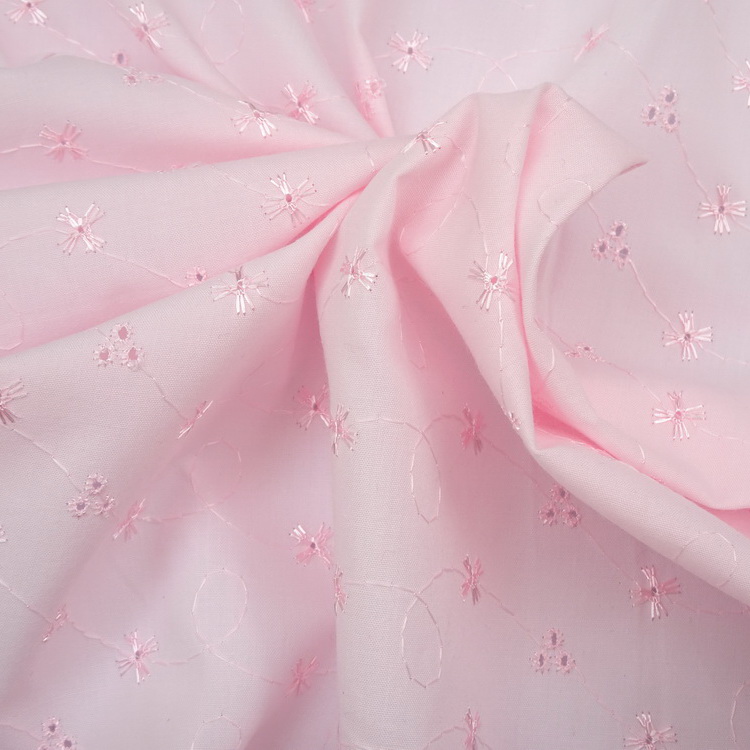 Poly Cotton Broderie Anglaise - 3 Hole - Pink - 112cm/44" Wide