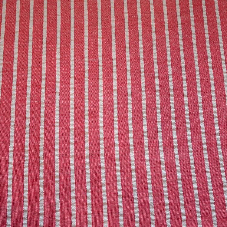 100% Polyester Seersucker - Stripe - Red - 140cm/56" Wide