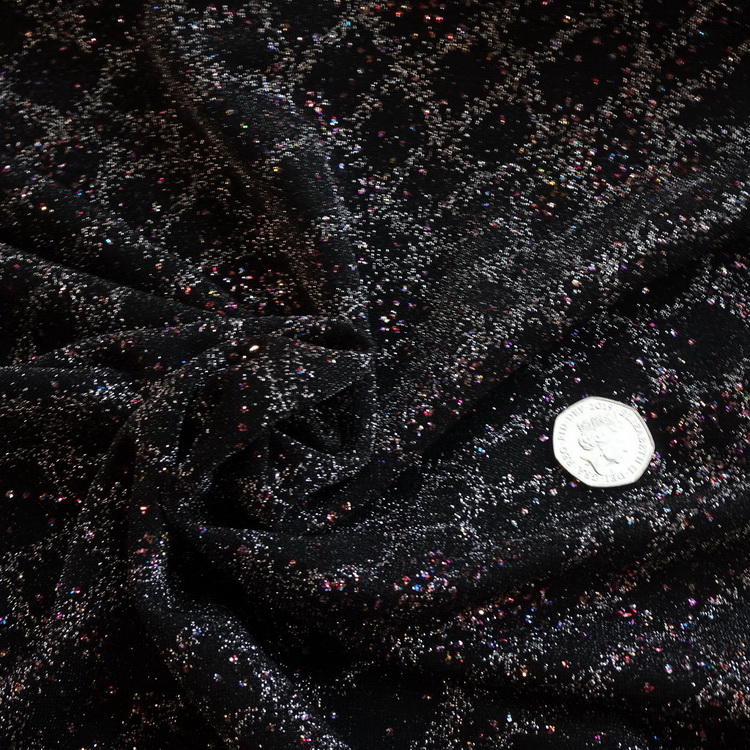 Colour- Multi Coloured Sparkle On Black Stretch Polyester-