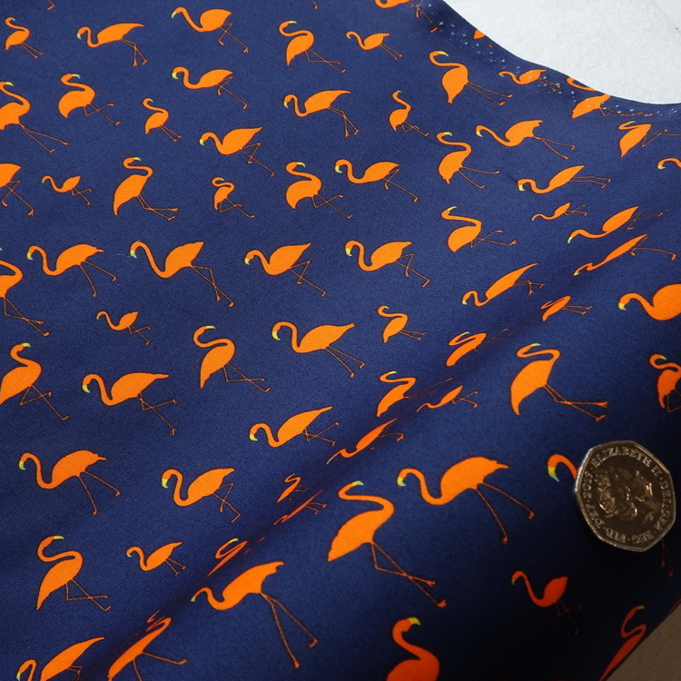 Colour- Orange Flamingos On Navy Background-