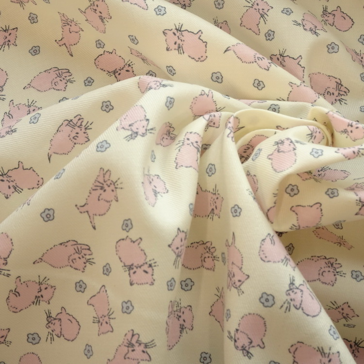 Colour- Ivory Background With Pink Cats and Blue dainty flowers -