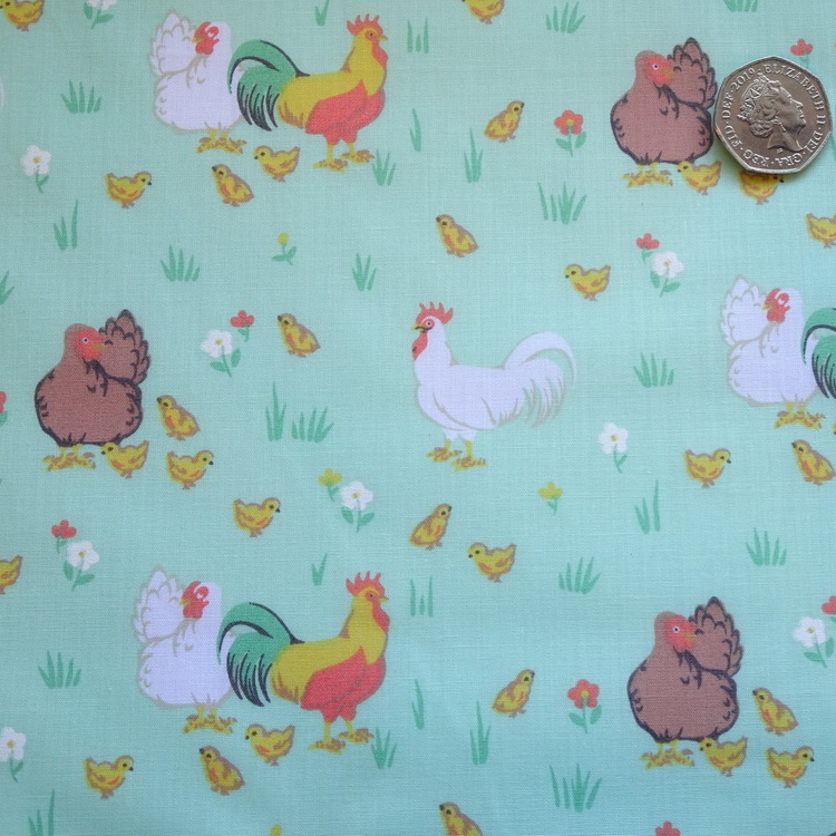 65% Poly 35% Cotton- Chickens- 112cm/44" Wide- Green