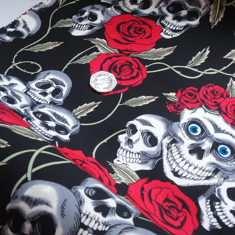 100% Cotton Poplin - Skulls, Bones & Roses - Sample