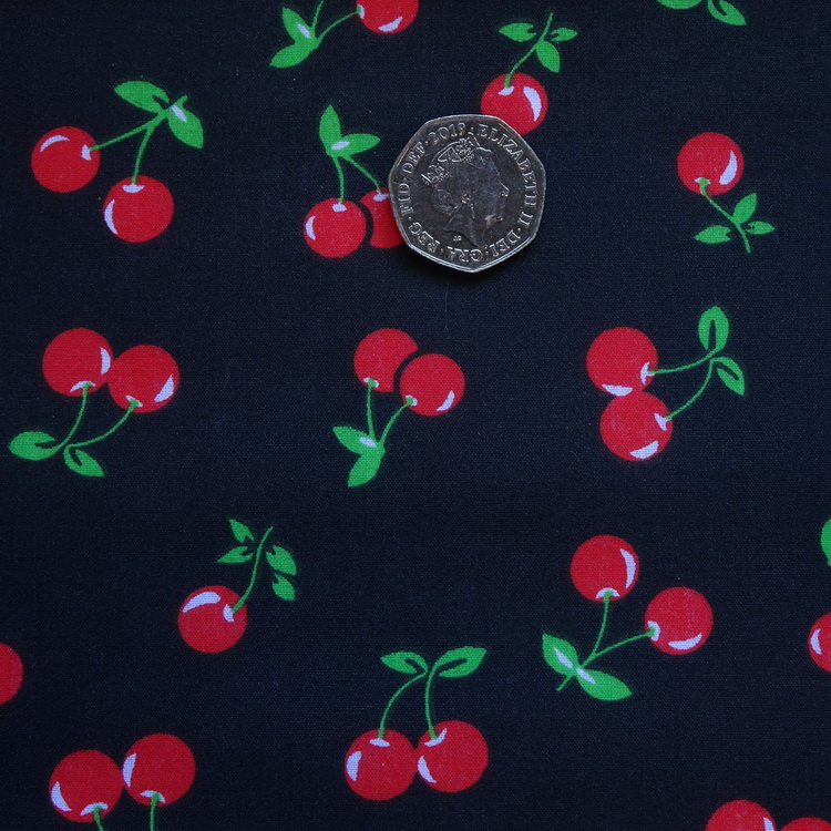 65% Poly 35% Cotton- Cherry Print- 112cm/44" Wide- Black