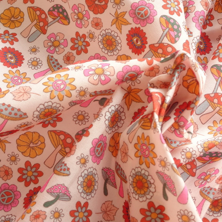90% Poly 10% Cotton - Digital Print - Mushrooms - 112cm/44" Wide