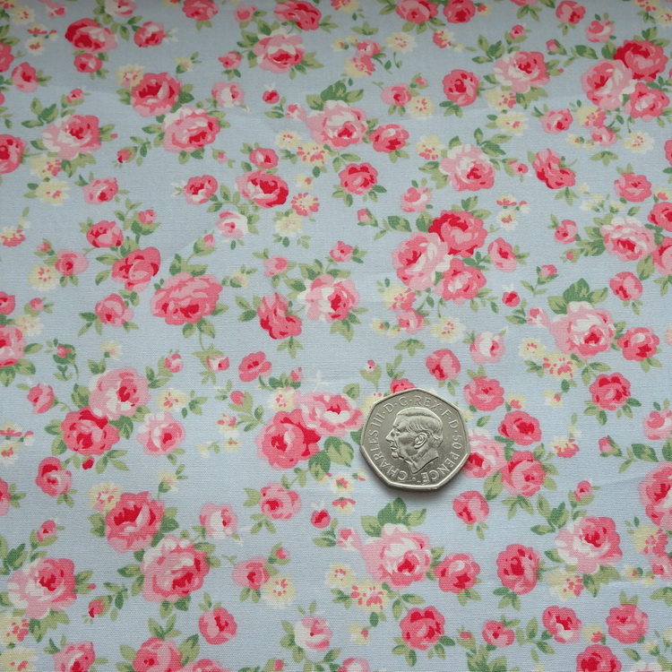 100% Cotton Poplin - Classic Roses - Blue - 112cm/44" Wide