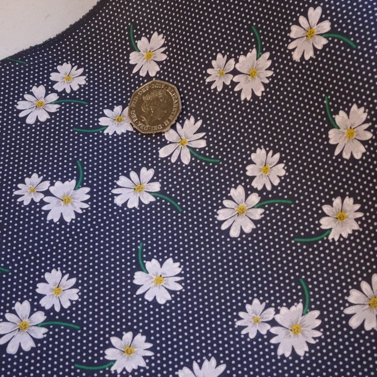 80% Poly 20% Cotton- Dotty Daisy- 112cm/44" Wide- Navy