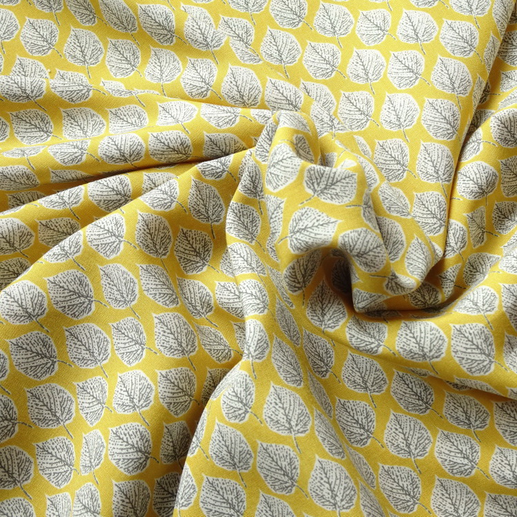100% Ananda Viscose- Yellow Leaf Print- Sample