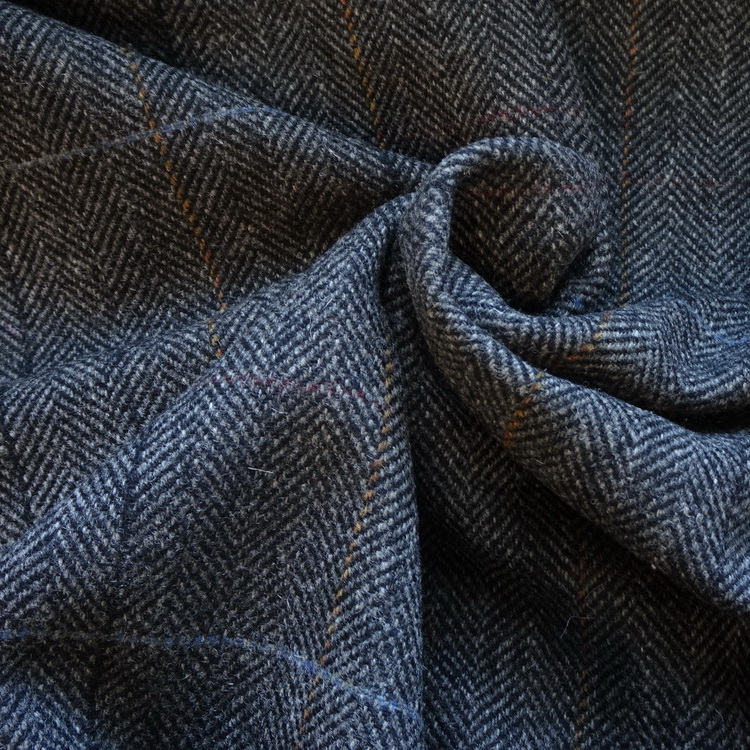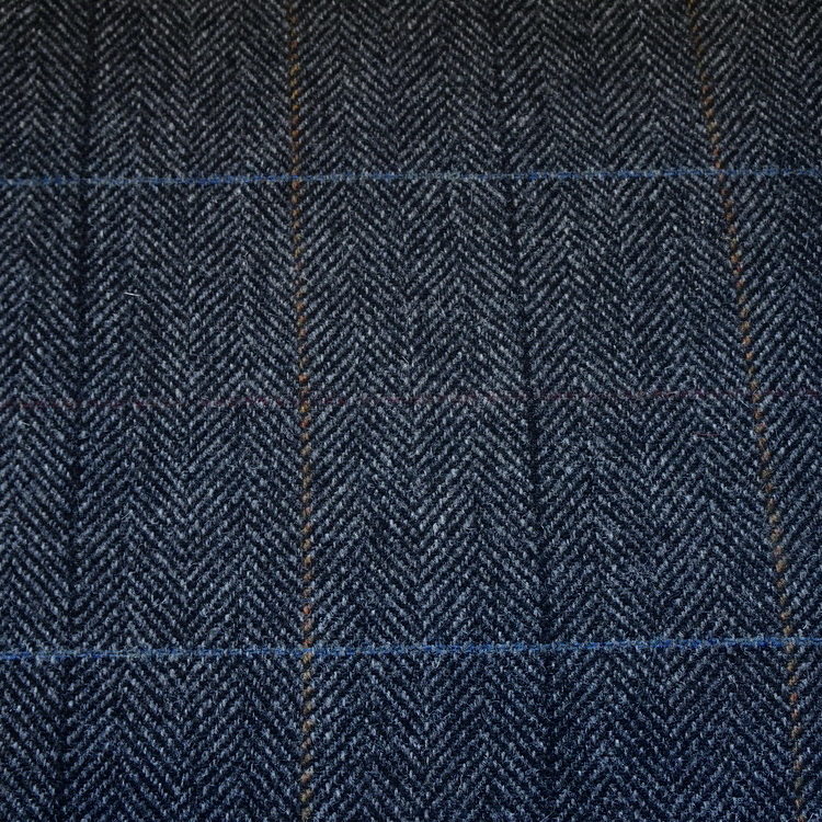 100% Wool - Grey - Herringbone Window Pane Check - 150cm / 59" Wide