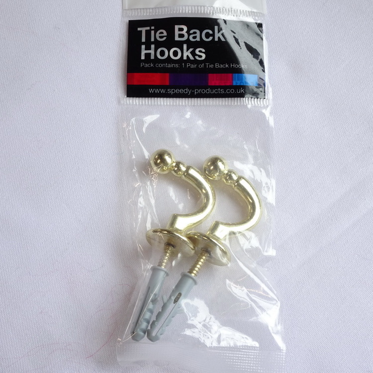 Easily installed, the tieback hook comes with the screw built into it and has raw plugs in the pack, but please note the suitability of the included fixings depend on the wall-
