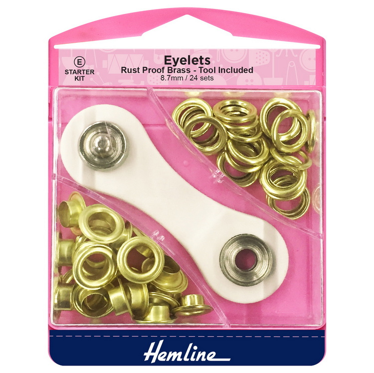 Hemline Eylets Starter Kit- 8.7mm/24 Sets- Gold