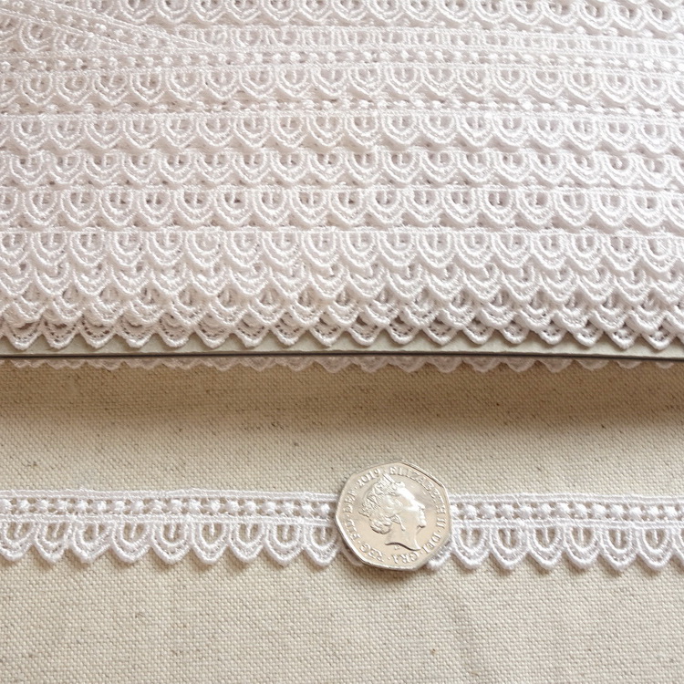 Flat 100% Polyester Chemical Lace - 14mm Wide - White