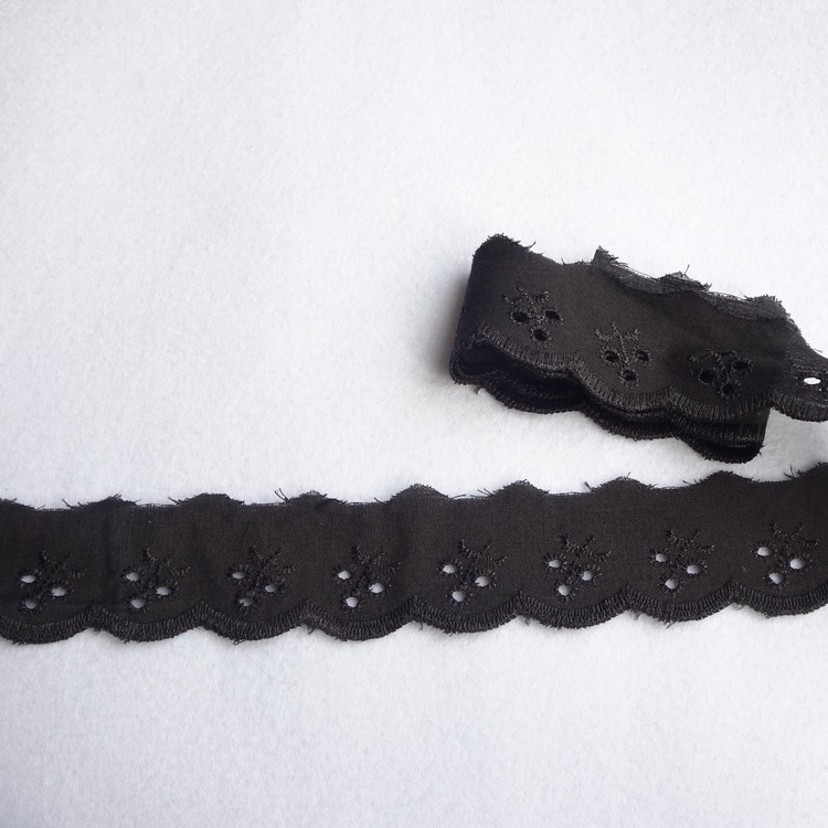 Flat Black Broderie Anglaise Lace - 35mm Wide