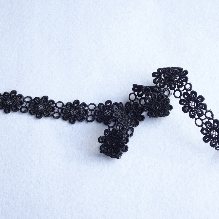 Flat Black Daisy Guipure Lace Trim - 20mm Wide