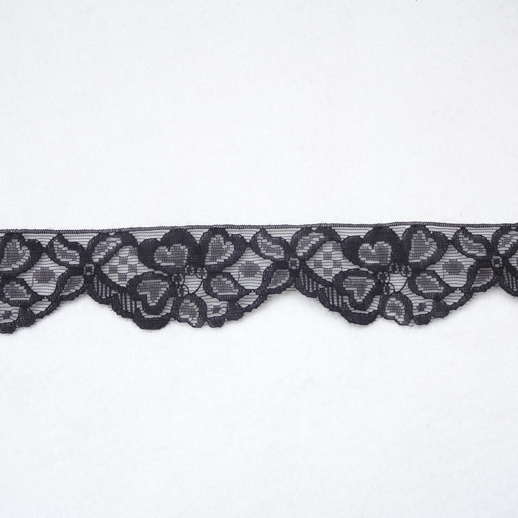 Flat Black Scalloped Polyester Lace - 35mm Wide