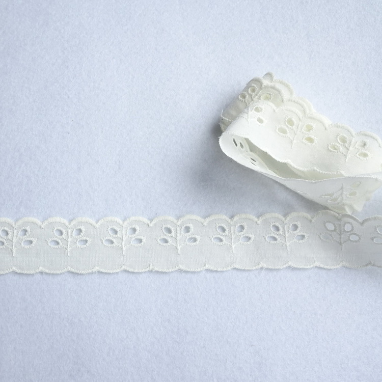 Flat Cream Broderie Anglaise Lace - 30mm Wide