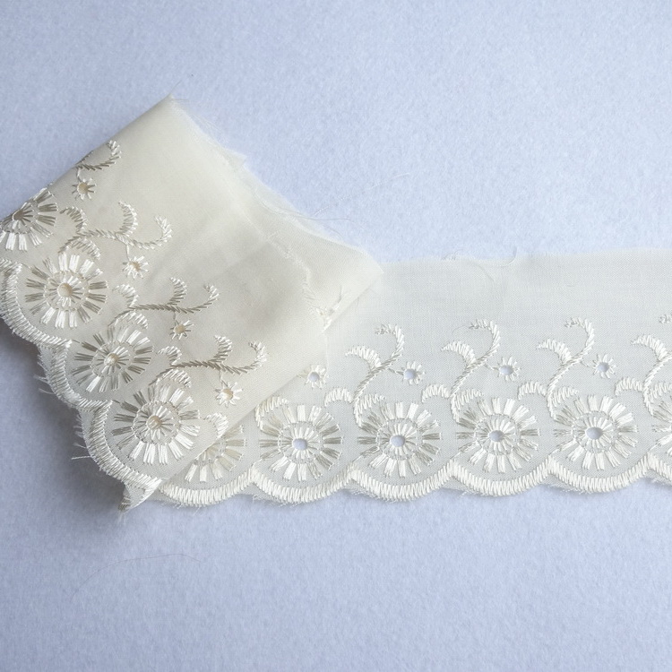 Flat Cream Broderie Anglaise Lace - 65mm Wide