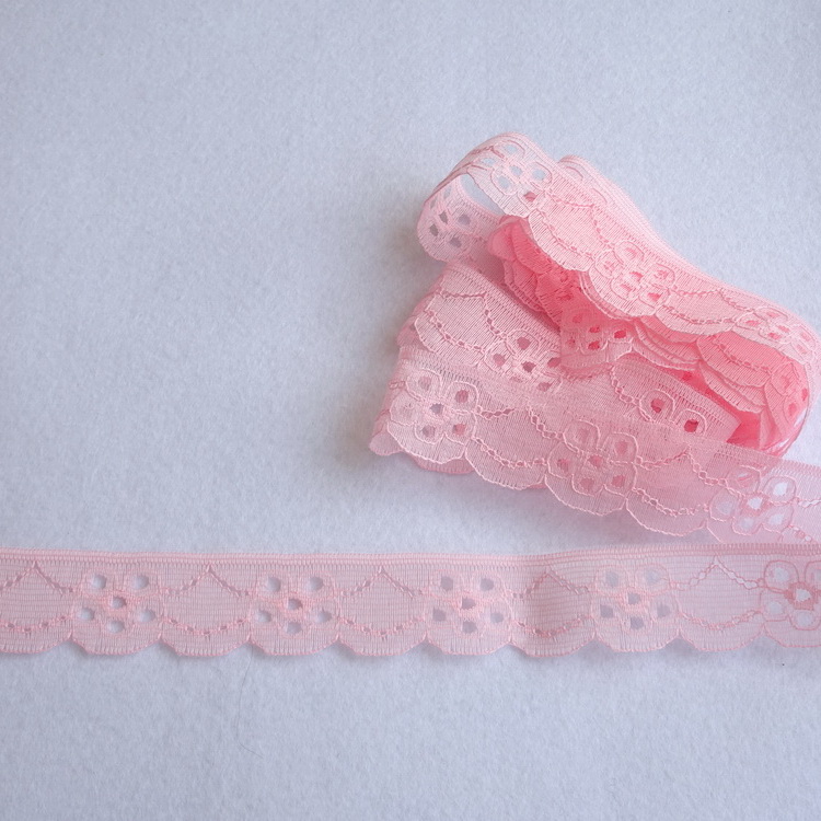 Flat Pink Polyester Lace - 25mm Wide