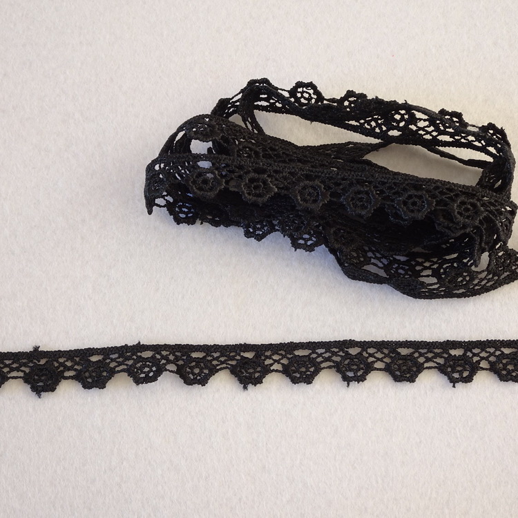 Flat Vintage Look Black Guipure Lace Trim - 10mm Wide
