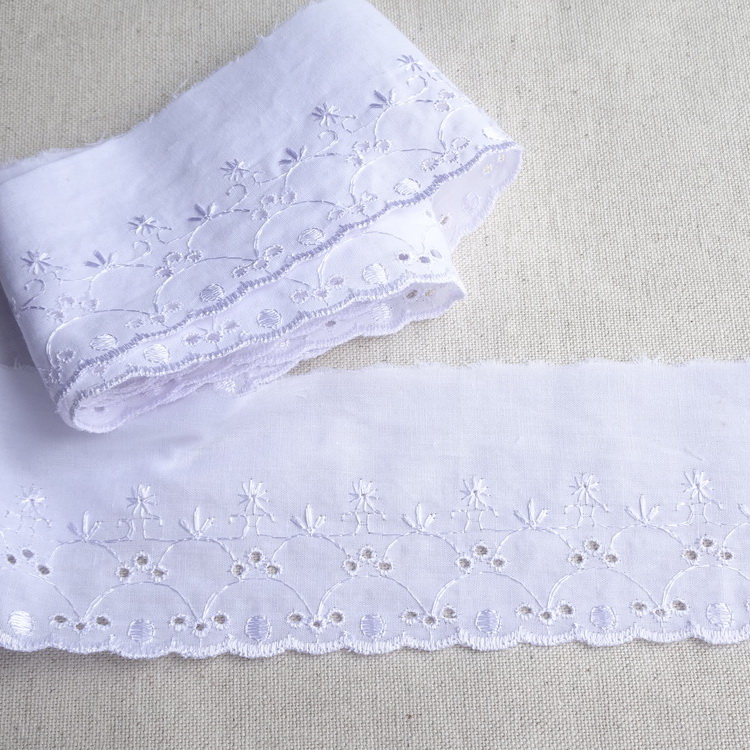 Flat White Broderie Anglaise Lace - 75mm Wide