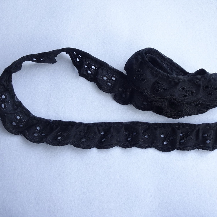 Frilled Black Broderie Anglaise Lace - 2 Sizes Available