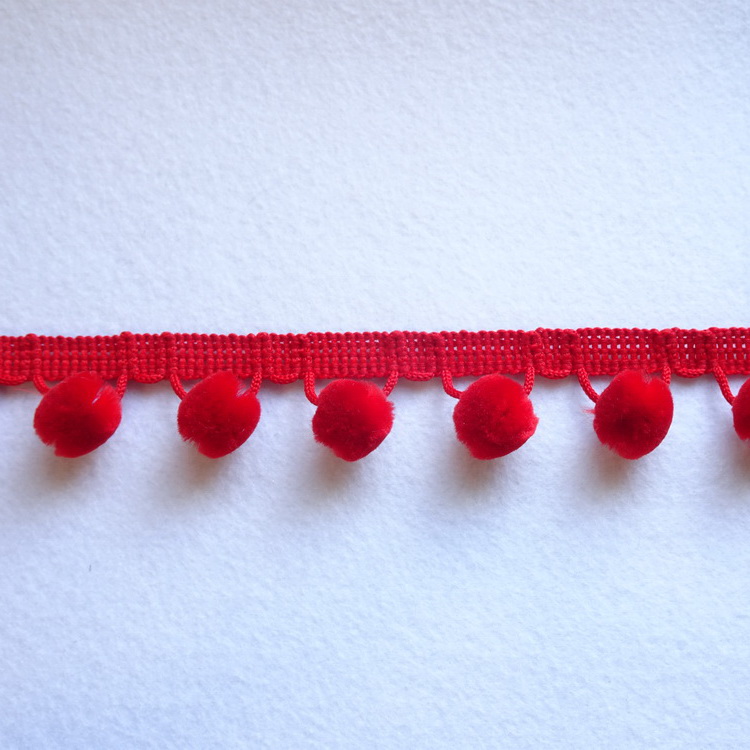 Hanging Pom Pom Trim - 15mm Pom Pom - Red