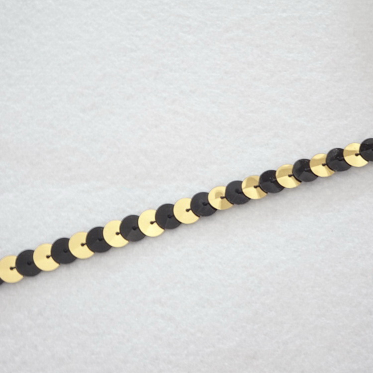 Strung Flat Sequins - 8mm Wide - Black & Gold