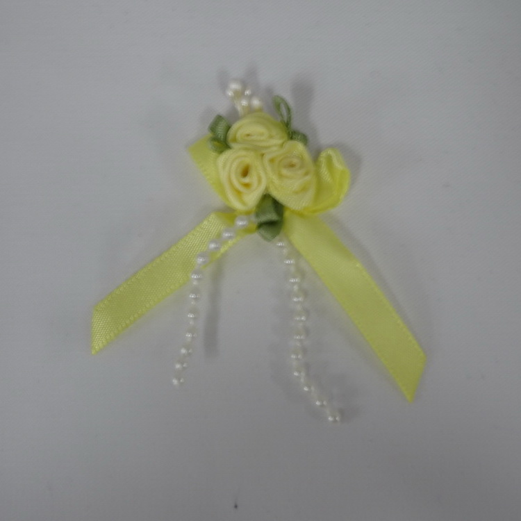 Lemon Satin 3 Rose Ribbon Cluster - With 2 Pearl Strings - 25mm Across - 8 Per Pack