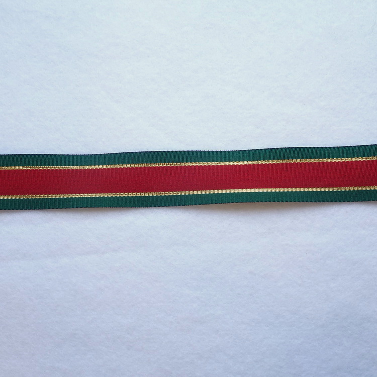 Gros Grain Ribbon - Red, Green & Gold Stripe - 25mm/32mm/55mm