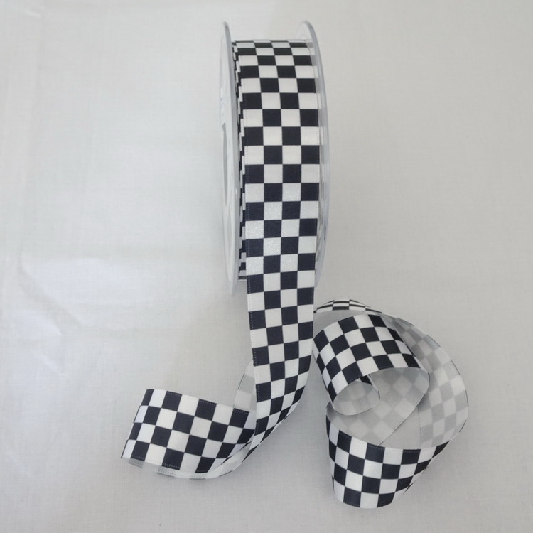 Polyester Satin Ribbon- Motor Racing Check- 15mm & 25mm Width