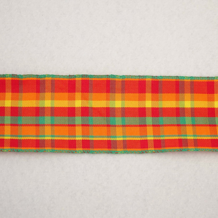 Multi Coloured Check Pattern On Both Sides Of Ribbon-