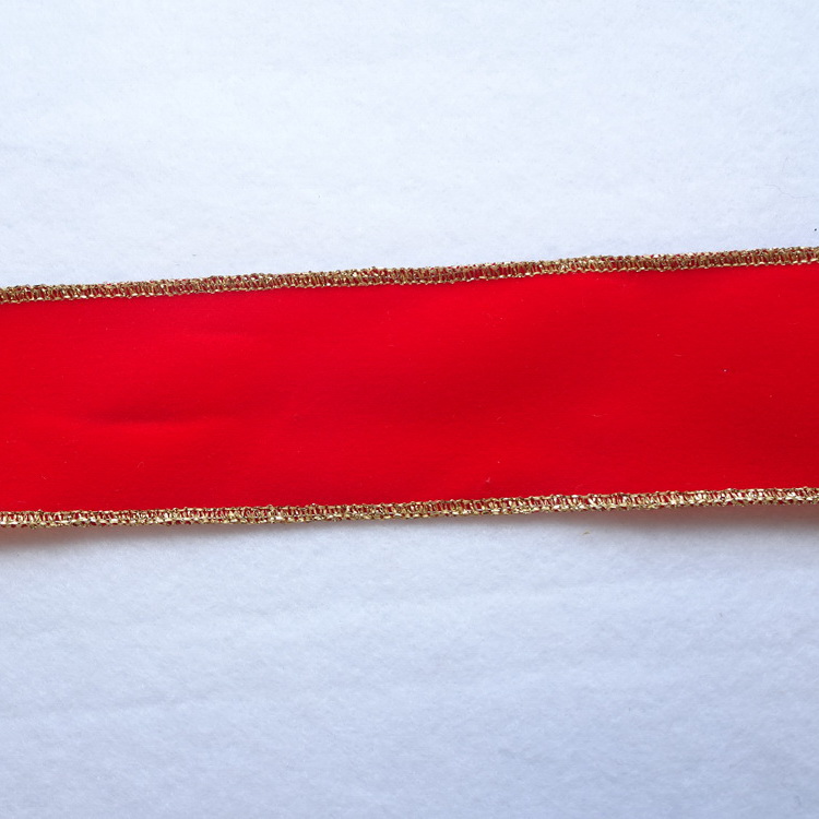 Wire Edged Velvet Craft Ribbon - 45mm /65mm - Red With Gold Metallic Edge