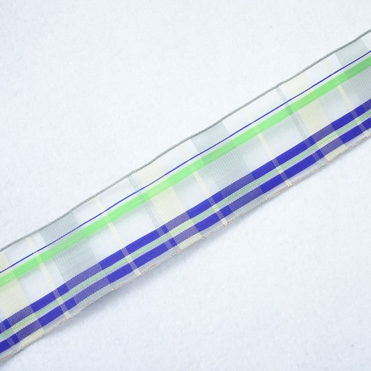 Wired Chiffon Check Ribbon- 40mm- Blue