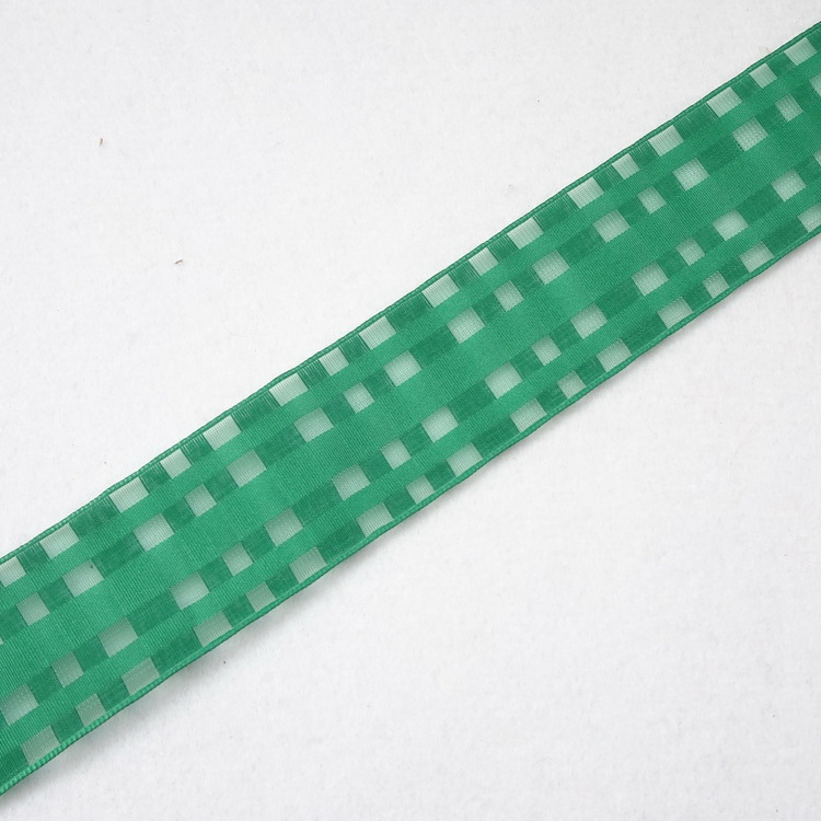 Wired Chiffon Check Ribbon- 40mm- Bottle Green
