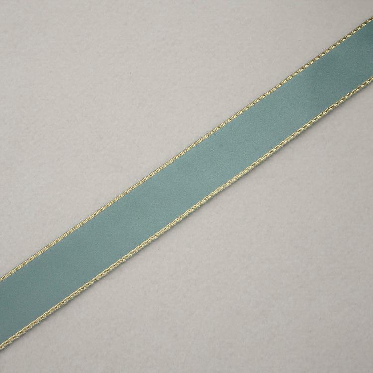 Berisfords Metallic Edge Satin Ribbon- Sea Green- 3mm/15mm/25mm/35mm