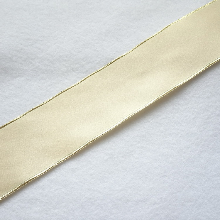 Berisfords Metallic Wire Edged Satin Ribbon- Cream- 25mm/50mm/57mm