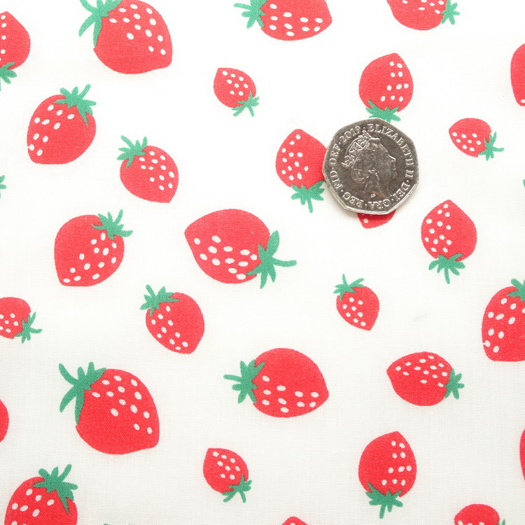80% Poly 20% Cotton- Strawberry Print- Ivory- Sample