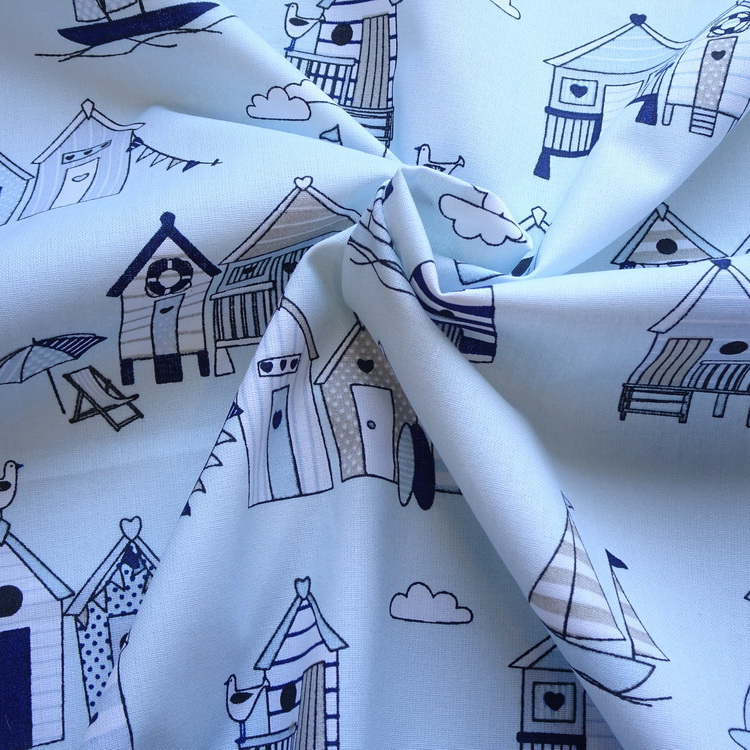 Colour- Happy Days Beach Huts On Powder Blue Background-