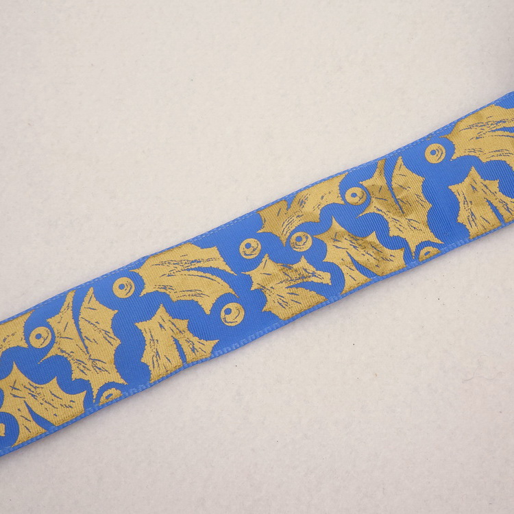 Christmas Wired Ribbon With Gold Metallic Holly-